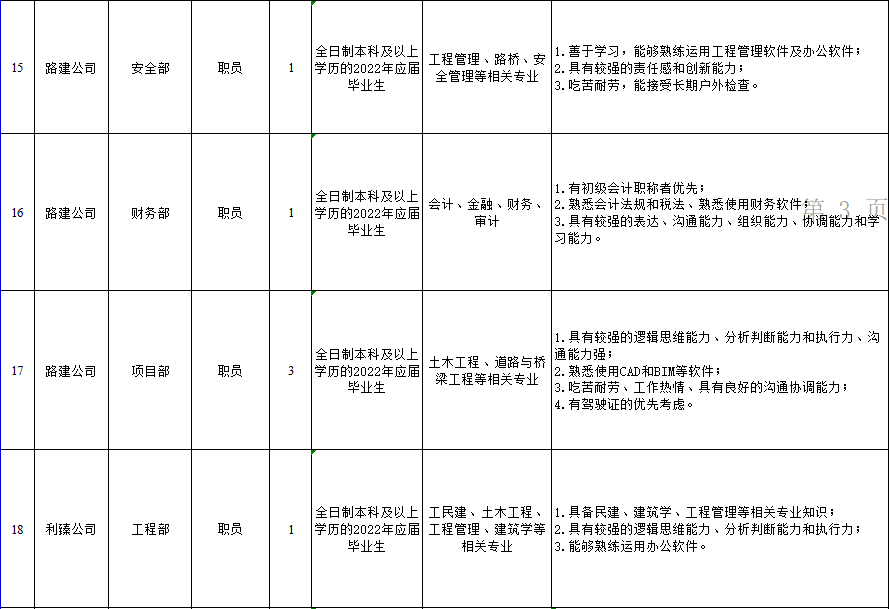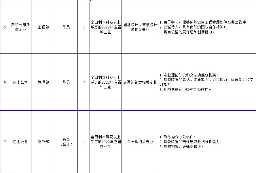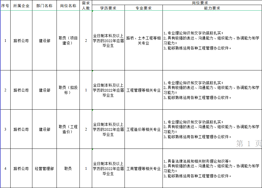 1.路桥公司需招投资经营1名、项目管理6名