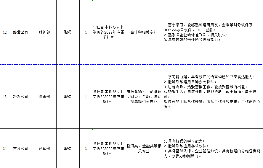 3.路发公司需招财务管理1名、投资经营2名、地质矿业3名