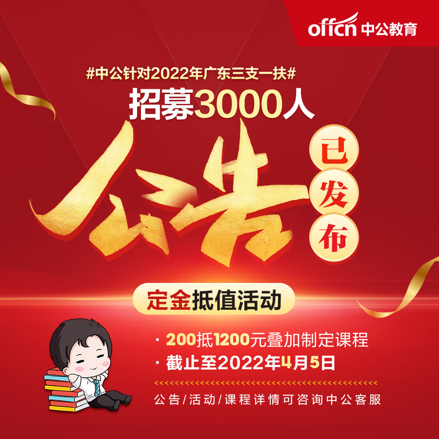 根据《中共中央组织部 人力资源社会保障部等十部门关于实施第四轮高校毕业生“三支一扶”计划的通知》(人社部发〔2021〕32号)和《中共广东省委办公厅 广东省人民政府办公厅印发〈关于进一步引导和鼓励高校毕业生到基层工作的实施意见〉的通知》(粤办发〔2018〕11号),2022年我省继续选派高校毕业生到基层从事支教、支农、支医和帮扶乡村振兴等志愿服务(简称为“三支一扶”)。现将有关事项公告如下: