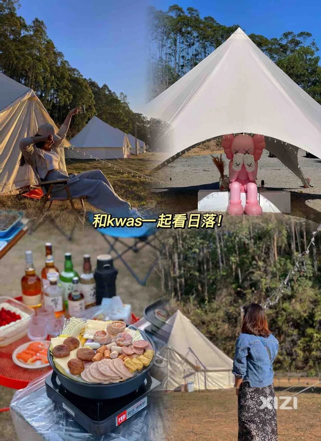 最酷的是营地里有一只粉色的大kaws,趁着夕阳日落开启人像模式超美的