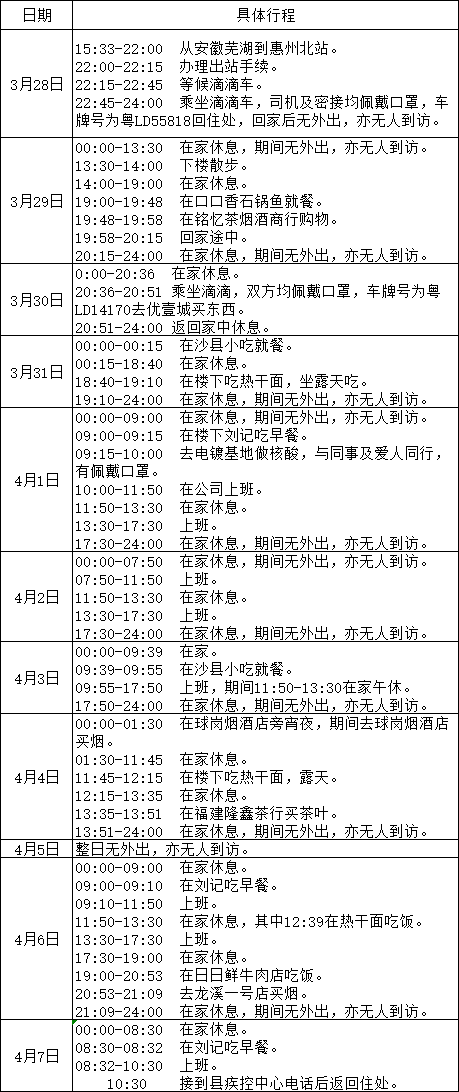 现有一名涉疫地区新冠肺炎病例的密切接触者在我街道一企业(惠州市秋叶原实业有限公司)附近活动,具体行程如下: