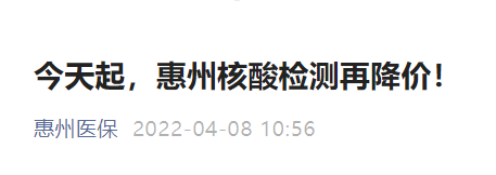 近期,面对全国疫情严峻形势,为促进新冠病毒核酸、抗原检测公平可及,进一步提升“早发现”能力,有效地降低大规模核酸筛查和高频率检测的成本,4月8日起,惠州再次下调核酸检测、抗原检测价格。