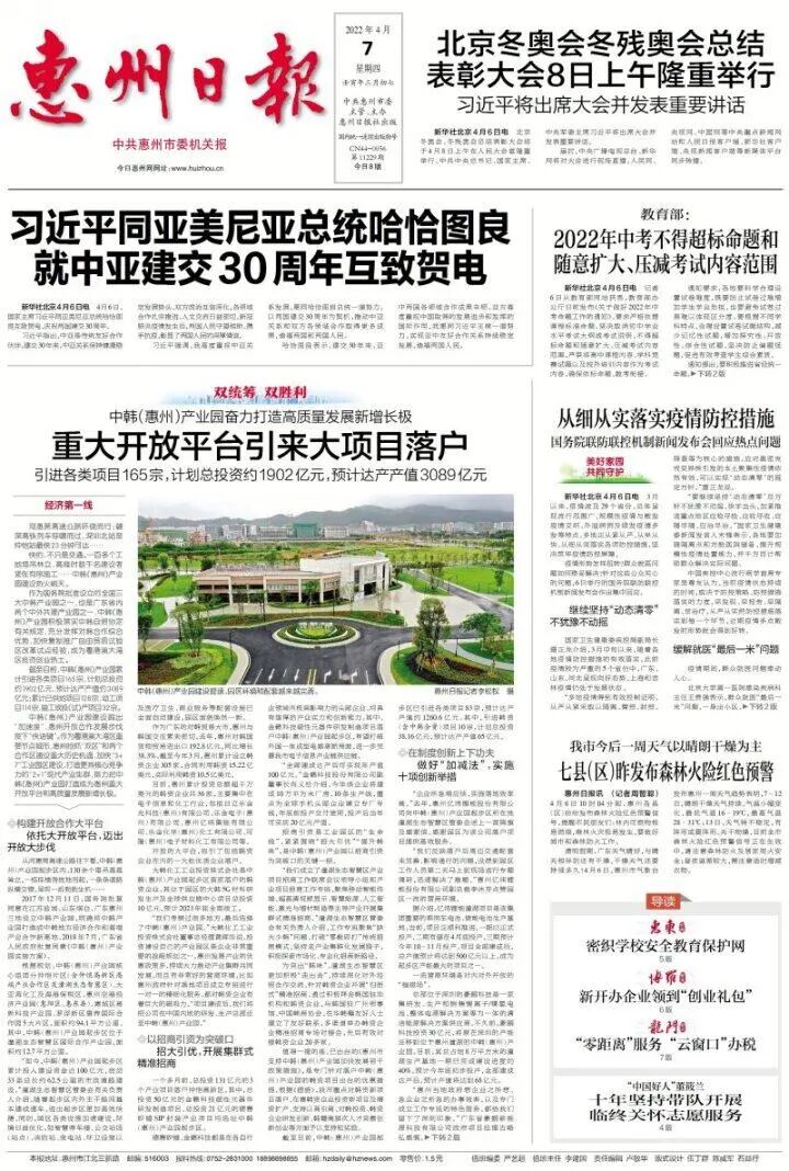 如今,中韩(惠州)产业园充分发挥惠州重大开放平台优势,加快复制推广自由贸易试验区改革试点经验,朝着打造成为中韩地方经济合作和高端产业合作新高地的目标阔步前行。