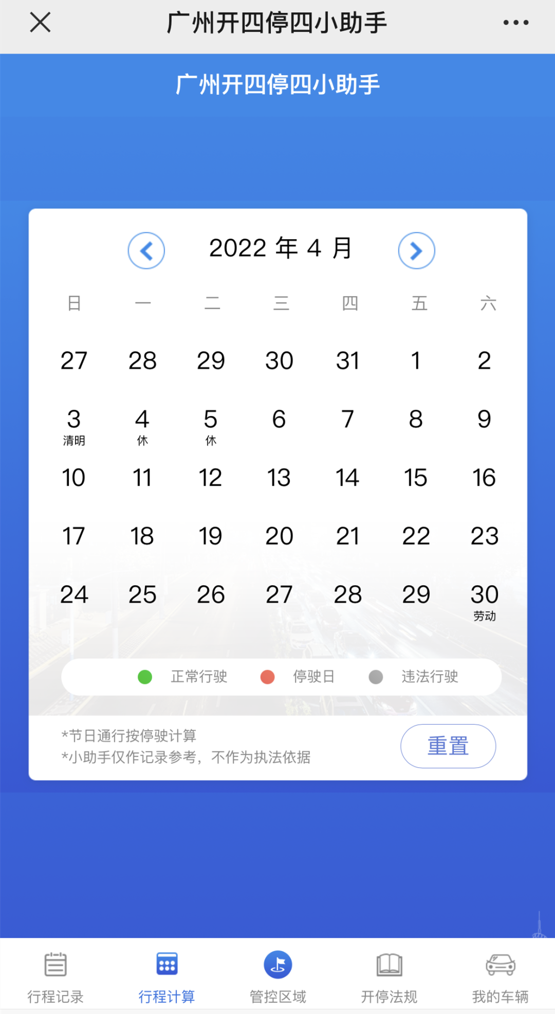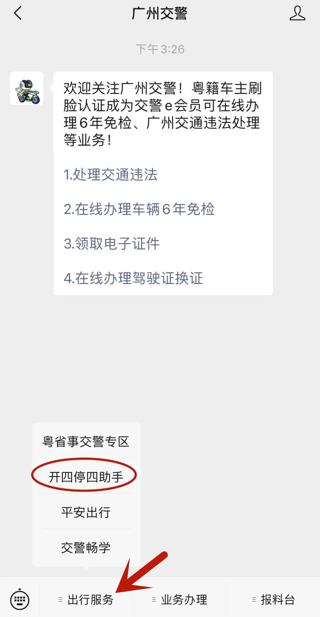 想知道自己车辆开了几天、是否需要停止,可这样操作:进入“广州交警”微信公众号-点击出行服务-选择开四停四助手-查看行程计算。