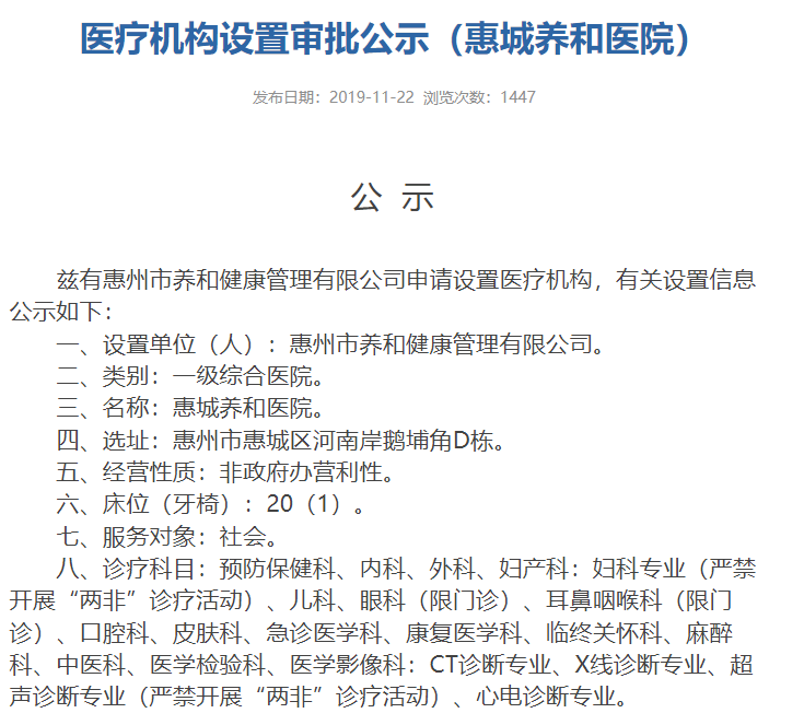 该建设方还在附近建有一个养和医院和一个养和养护院,主要诊疗预防保健科、内科、外科、妇产科等科目。