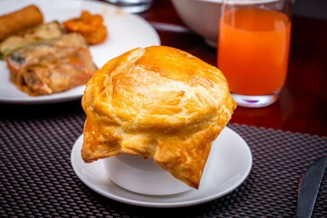汤汁晶莹可口,浓郁鲜甜。舀上一勺,入口十分顺滑,分分钟就能干掉一碗。搭配上酥皮,带来一口入魂的美妙体验。