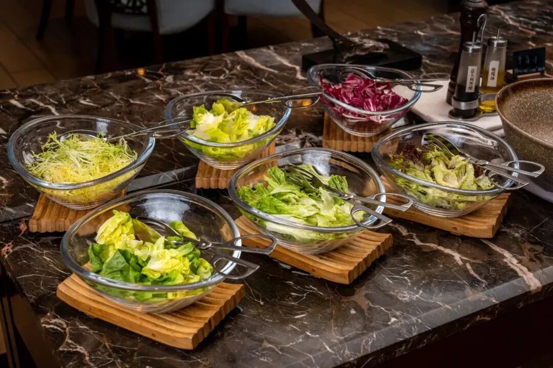 来一盘沙律清清味蕾,迎接接下来的美食也是很不错的。九芽生菜、西生菜、红叶生菜、珊瑚生菜、罗纹生菜、牛油生菜、青瓜条、车厘茄、洋葱圈、樱桃萝卜…解腻又健康。
