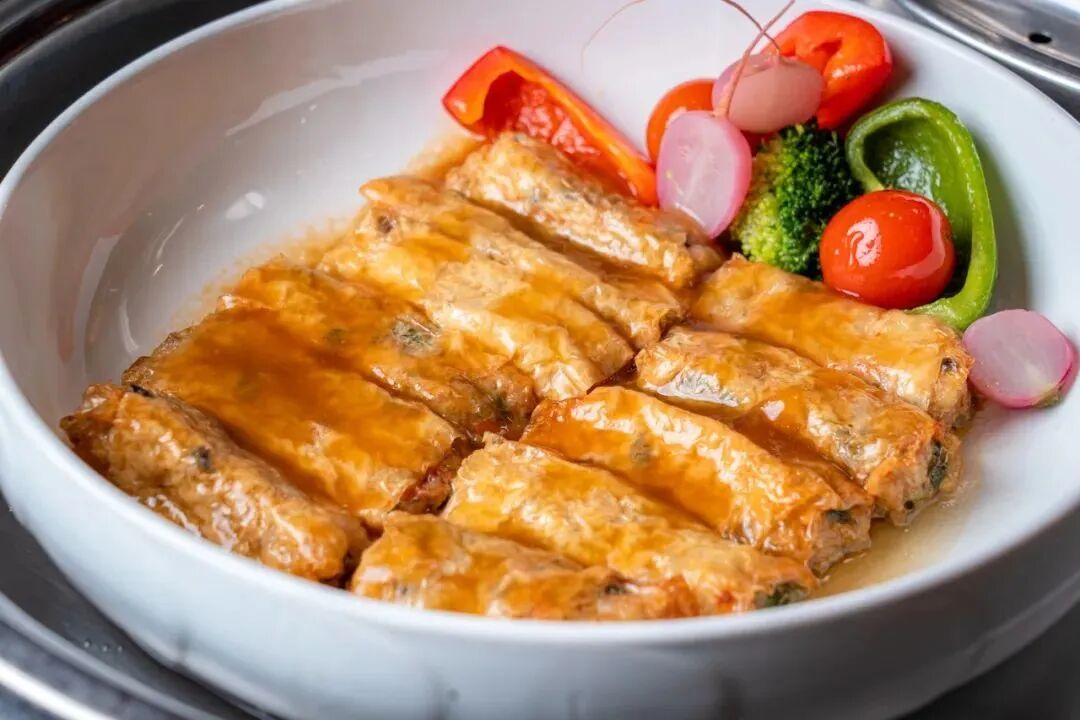 持续勾魂的是中西式热菜,黑椒牛仔骨、奶油芝士焗腐皮卷、天妇罗虾、藤椒蒸鲈鱼、蒜香排骨…每一款都很符合惠州人的胃口,光是看着就让人忍不住垂涎。