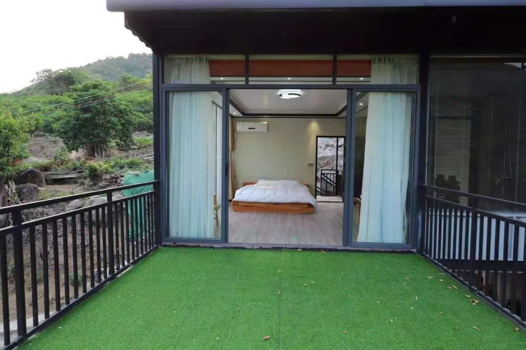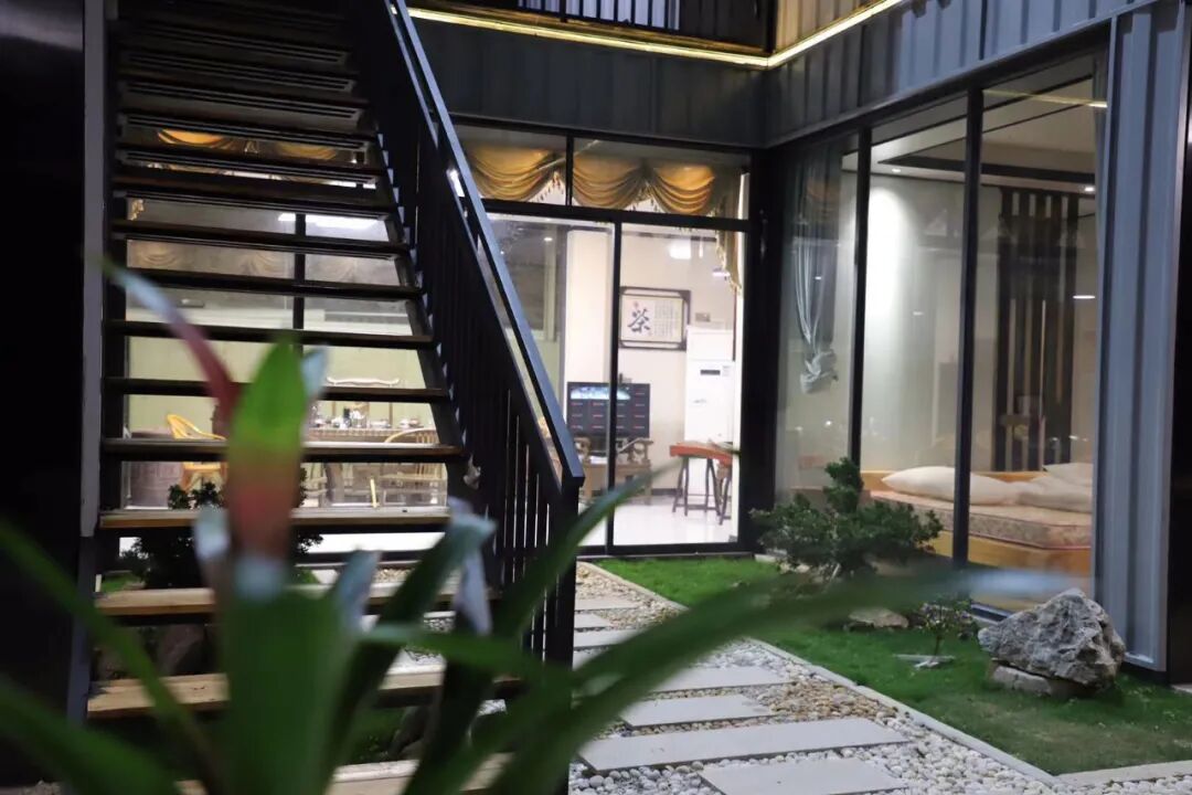 院子的两侧是两个大房间,有超大的阳台,我们可以品茶,回归原始,回归慢生活。