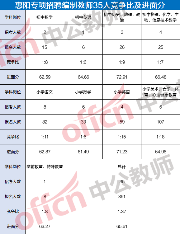 从2021年惠阳专项编制35人来看,最低竞争比只有1:6,像总体上进面分差异较大,想要报考这类岗位的小伙伴要在笔试上拉开差距才行。