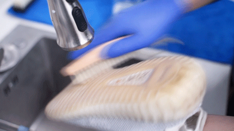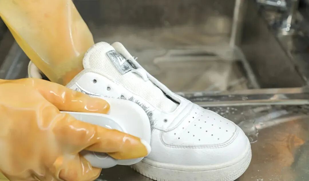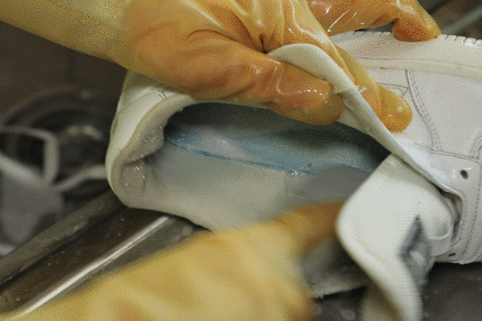 每对鞋的清洗全程都会佩戴手套