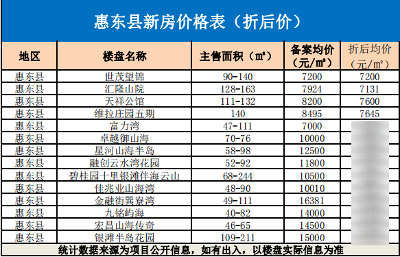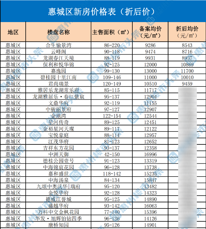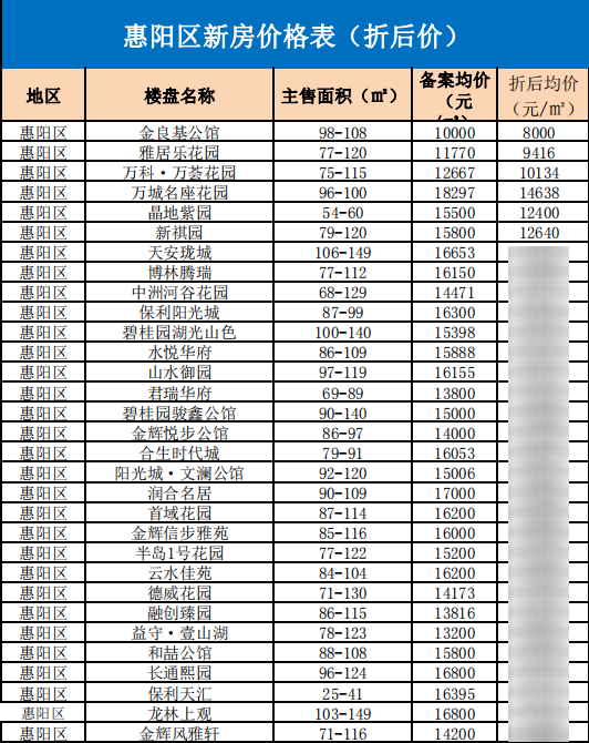为了方便大家了解惠州最新的房价信息,楼叔特别整理了近期惠州244个在售新盘的折扣价格,供大家购房参考。