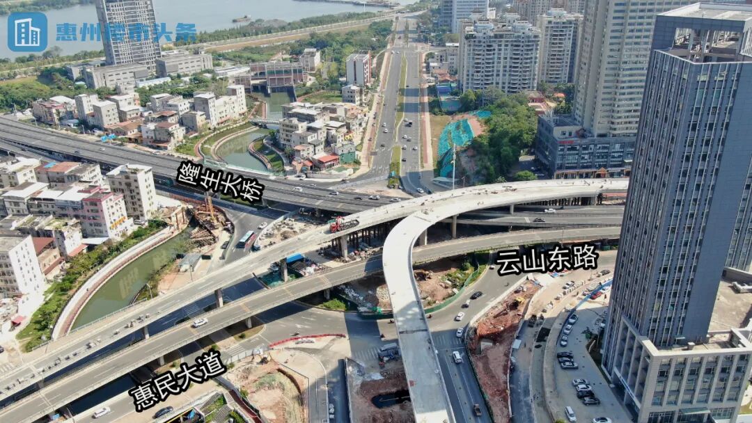金龙大道(惠城区段)快速化改造项目主要对沿线交叉路口实施改造,通过增设跨线高架桥或下沉通道的方式,实现快速化通行,建成后将成为惠州首条城市快速化道路,届时将实现市区云山东路往广惠高速无灯控畅行,通行时间由30分钟以上缩短至10分钟以内。