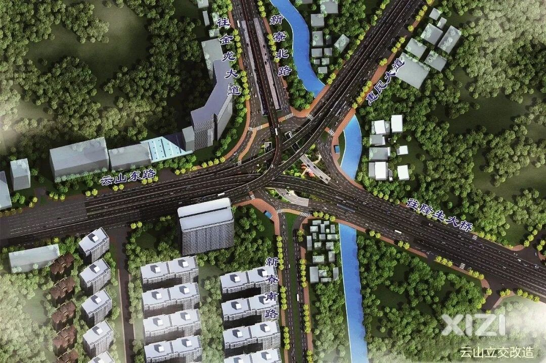 云山立交位于惠民大道、隆生大桥、云山东路等三条主干道的交叉口,是金龙大道最大的立交改造。