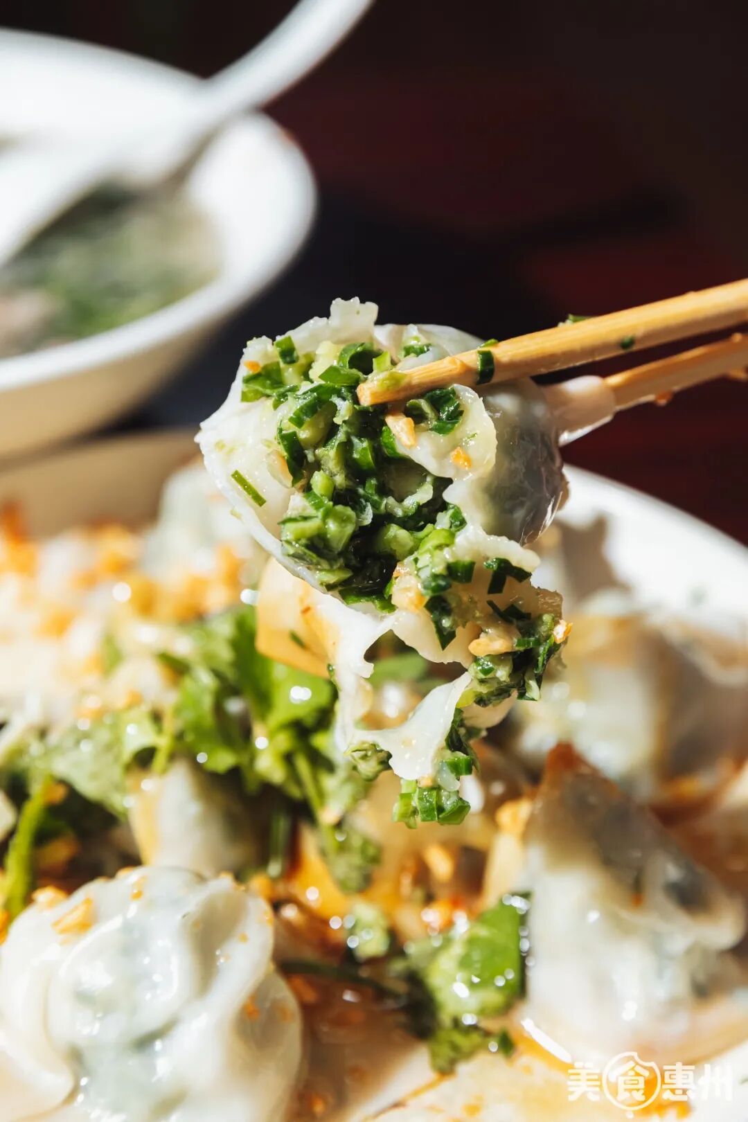 咬开就爆汁的韭菜饺,加上炸蒜调制的酱料,香爆!