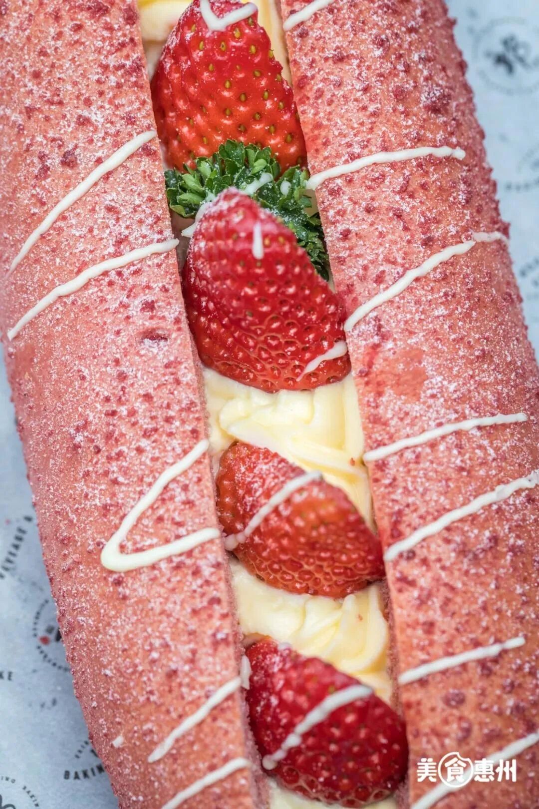 草莓欧包是女生都爱的一款,里面的奶油绵软,草莓和蓝莓让人兴奋,感受夏天来临前的甜蜜,吃上一口,这份甜,收下了。