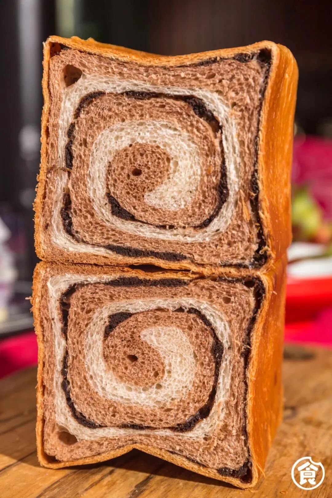 不同于其他吐司的松散,紫薯吐司吃起来反而很有嚼劲,层层螺旋状的紫薯镶嵌在面包里,香味浓郁,回味无穷。
