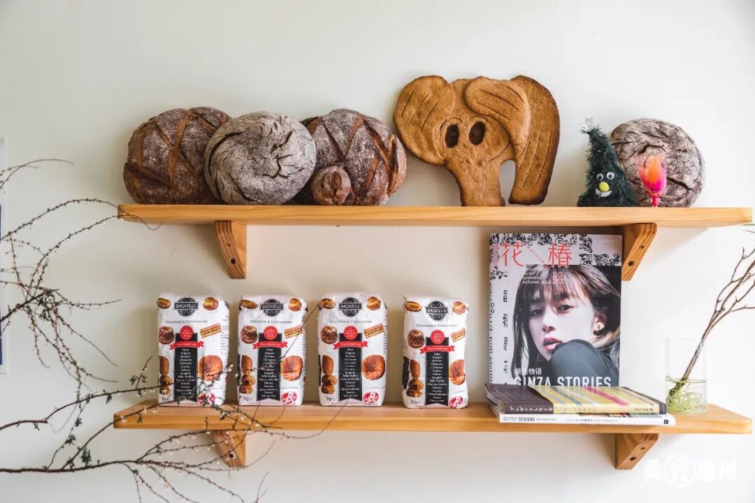 店如其名的一家日式面包店,治愈的暖光色调,简约的木质设计风格,满满当当躺在餐柜里的小面包们,一晃神,犹如走进了一家日式家庭小作坊里。