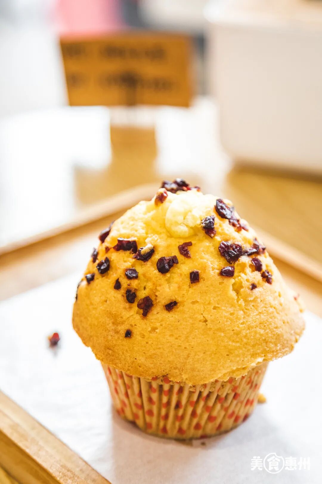 5元1个的蔓越莓马芬,酸甜的蔓越莓干融入在扎实的蛋糕里,细腻松软,早晨吃一个就足够管饱。