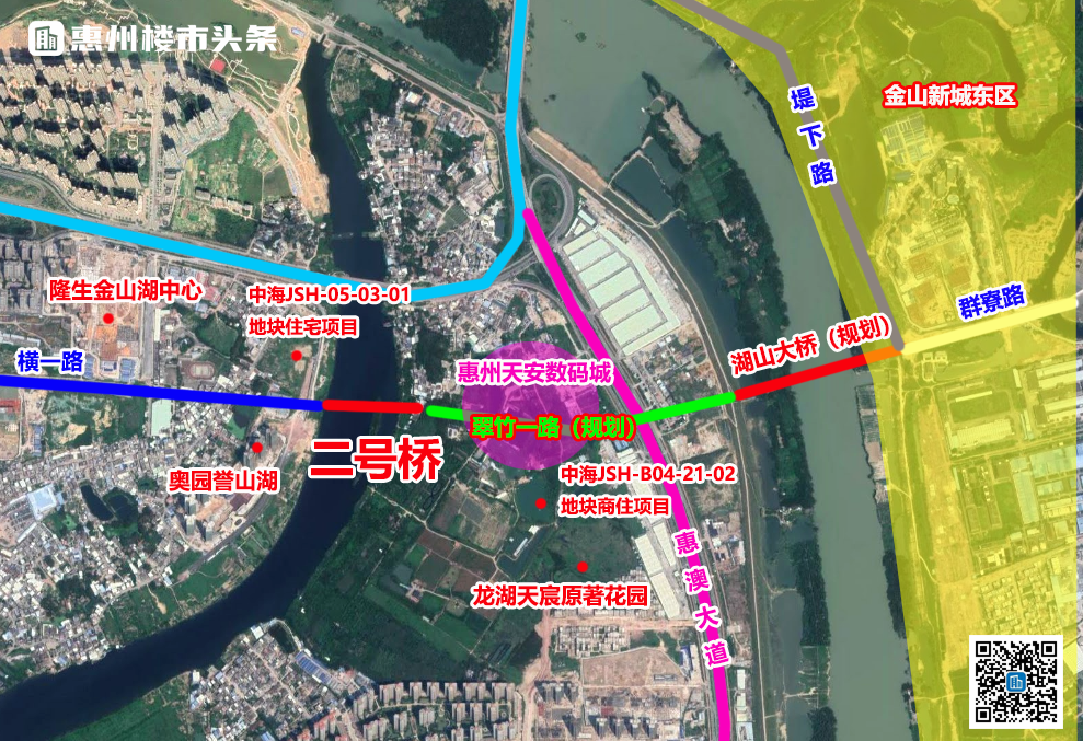 金山湖二号桥连接横一路和翠竹一路,已成为惠城开发热土。
