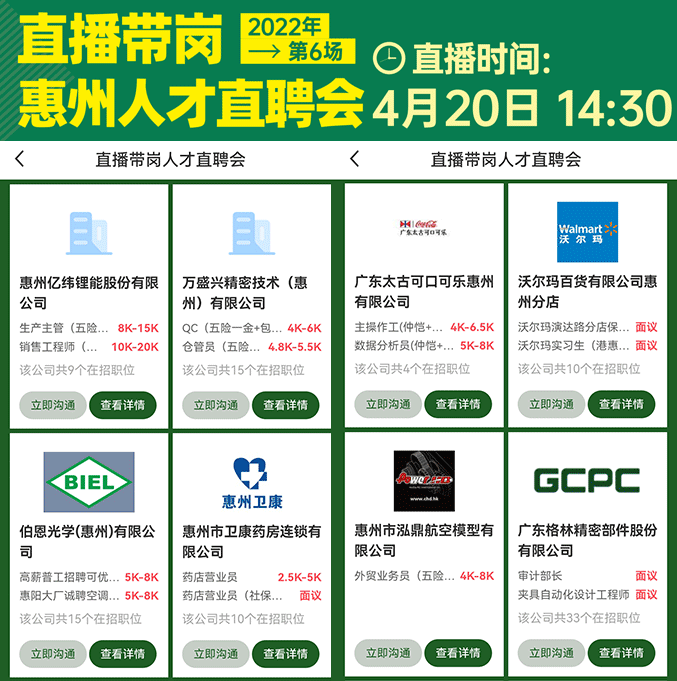 本次直播招聘会,我们邀请了5家名企HR来到直播间,分别为:同为股份、新峰药业、顺丰速运、格林精密、盛弘电气,与求职者“面对面”互动,与企业HR聊工作,向广大求职者介绍了企业的基本情况、招聘岗位、工作内容、工作时间、薪资待遇等,解答求职人员在互动留言区的提问!