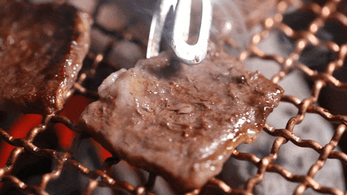 经过事先腌制过的牛肉,放在烤盘上的一瞬间挥发出诱人的香气。吃起来嚼劲十足,每咬一口都是浓郁的牛肉香味,就算烤到全熟也依然香嫩。