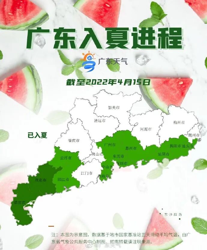 根据“气候季节划分”标准(QX/T 152-2012)规定:连续5天的5日滑动平均气温序列≥22℃,则以对应的气温序列中第一个≥22℃的日期作为夏季起始日。