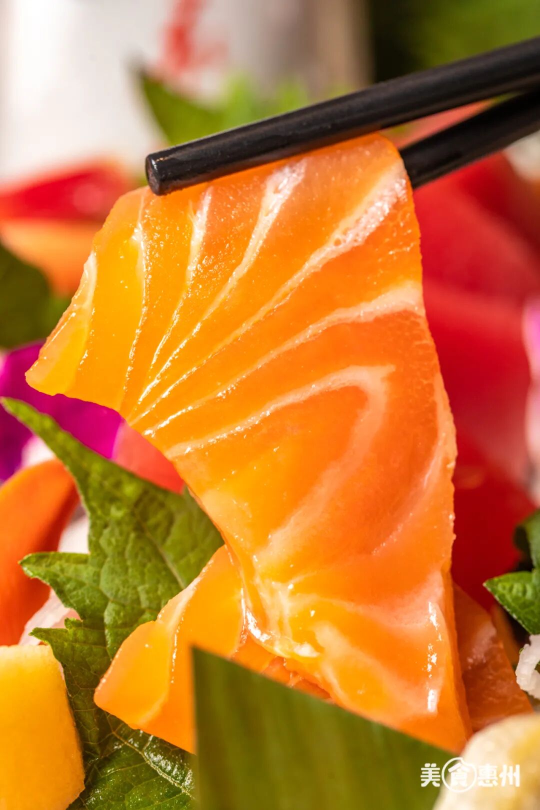 刺身的厚度均匀是能决定口感好坏的。厚切的三文鱼片,口感肥美而柔软,看到这颜值和新鲜度,你确定还不心动来点上一份吗?