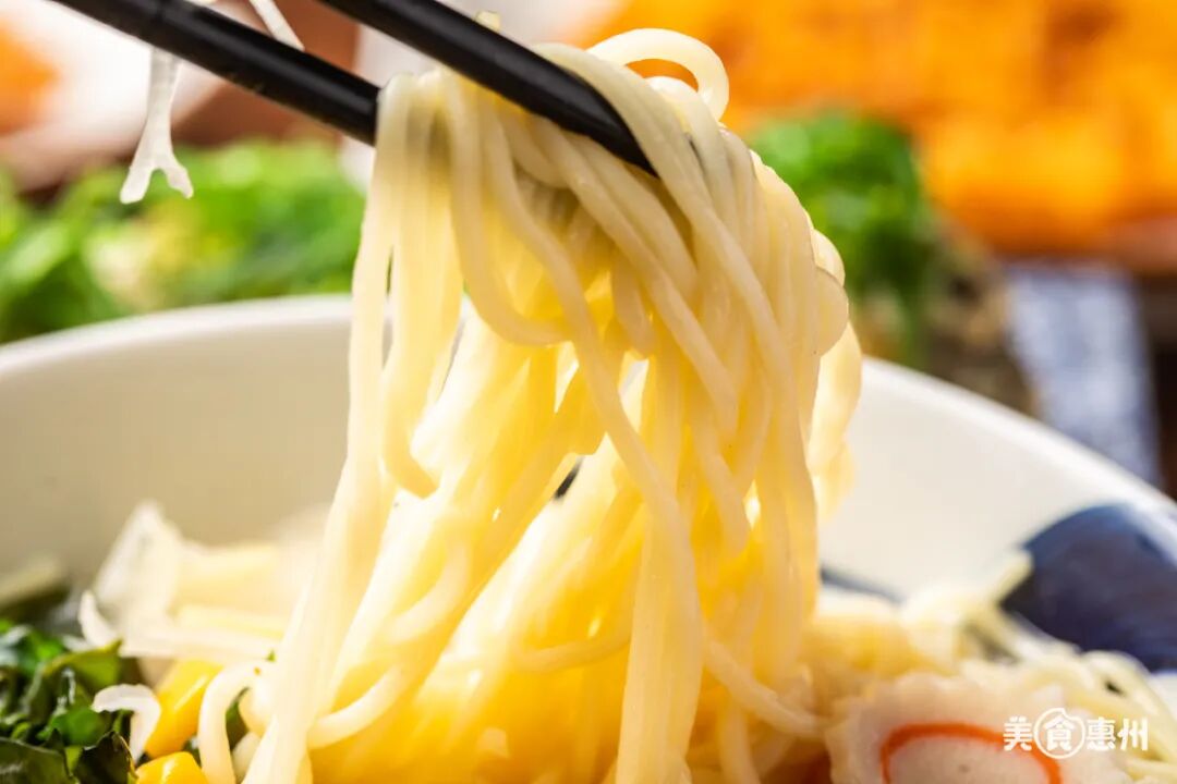 像这份猪软骨拉面,鲜浓醇白的汤底包裹着每一根拉面,吸溜一口拉面、吃一口入味的猪软骨,劲道的口感包裹着汤头的滋味,口感丰盈。