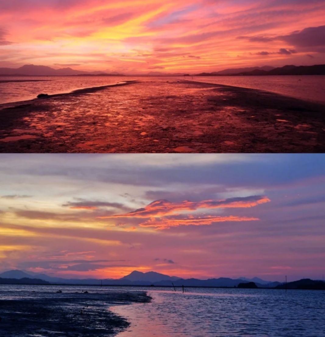 3、17:30前往【白沙码头日落】开始尽情欣赏落日滩涂、白鹭齐飞的美景。傍晚时分,夕阳西下,晚霞把整个海湾照得金红,映红了整片红树林。而在海滩沼泽地觅了一天食的鹭鸟,全部在红树林上空飞翔,有的盘旋几圈后再飞回红树林。还有许许多多的小鸟成群地在红树林上空飞来飞去,不时传来扑翅膀的声音,一会儿一群鸟儿飞起,一会儿一只鹭鸟腾飞,发出阵阵叫声……除了红树林,盐洲镇还有古老的渔船,淳朴的民风和一望无际的滩涂美景……除此之外,我们还特别赠送坐渔船游览湿地公园,欣赏蚝场,还可以上小岛游玩。