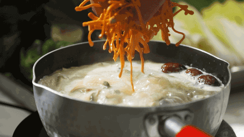 诚意满满的一锅食材,老板一点都不吝啬。高汤与猪肚、菌丝、虫草花、豆腐、红枣等多样食材,在高温中慢慢释放出各自的味道再融合在一起,香味随着热气飘散在空气中,让人不禁垂涎三尺。