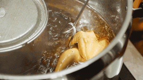 深入后厨,我们发现椒麻鸡的秘密都来源于这锅卤料。每一只鸡都需要先经过秘制卤水的洗礼,再由专业人士“暴力开撕”。手撕的做法能保留鸡肉的纹理和质感,吃起来也会更加过瘾!