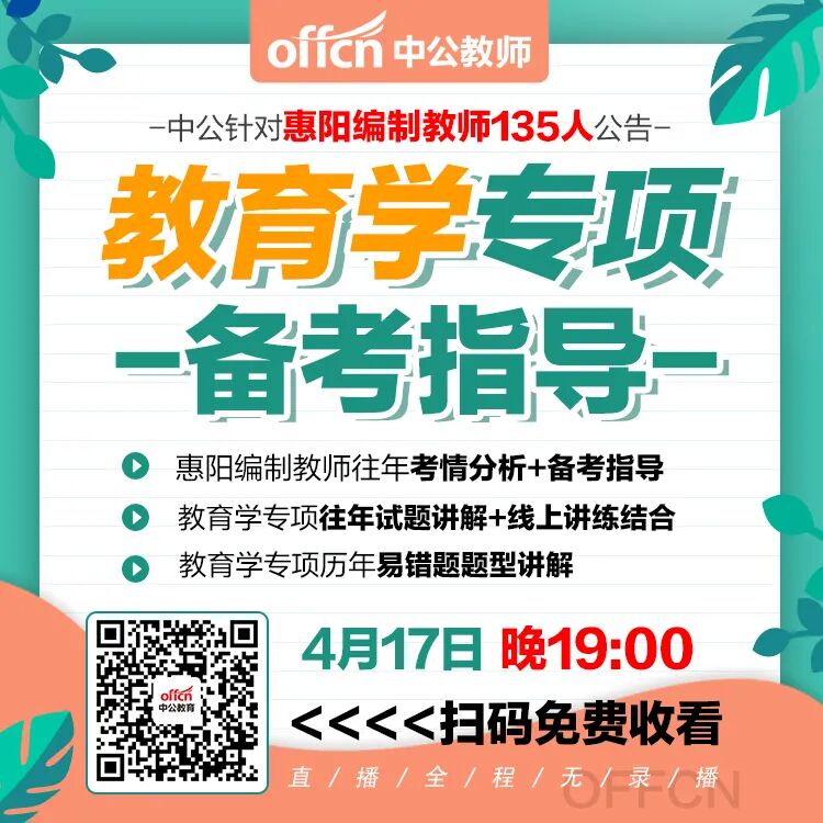 本篇文章来源于微信公众号: 惠州中公教师资讯