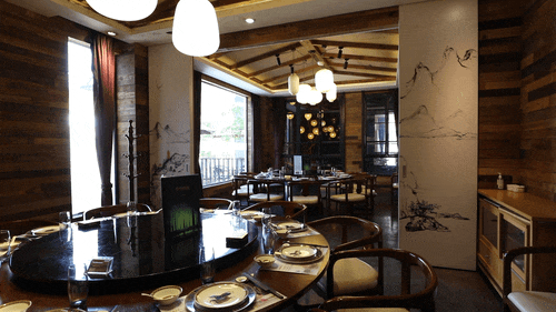 不管是一楼大堂还是二楼包房,每一间的风格都各不相同,湖景房、现代元素、诗意元素、壁画风格…美景+美食,无疑是一种视觉和味觉上的享受。