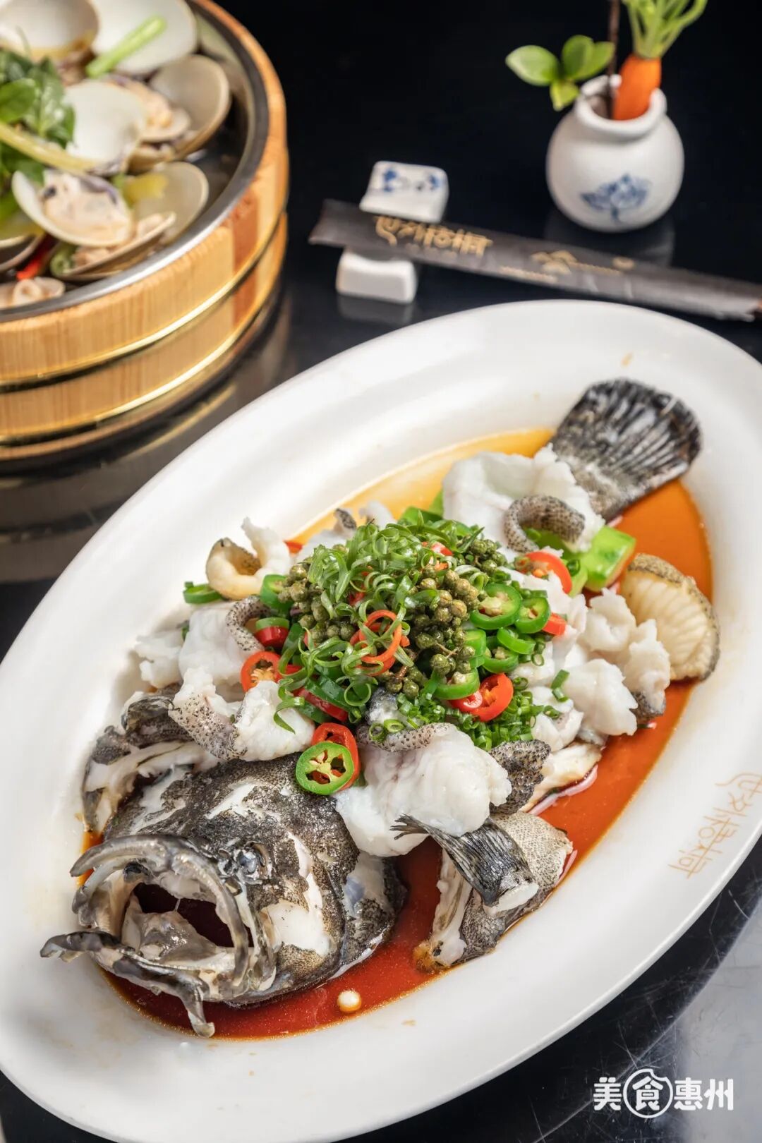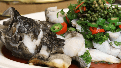 广东人酷爱吃清蒸鱼,那么这条特色鲜花椒蒸斑鱼一定要点上一份。