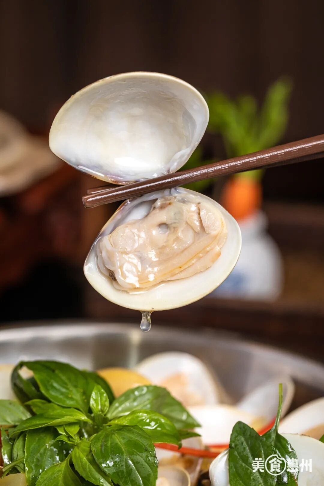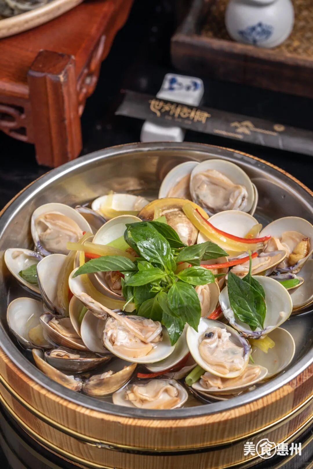 磨盘大的木盆盛满了沙白,仿佛集体蒸桑拿一般,个个肉大饱满,光是上菜的架势就足以让人惊叹。