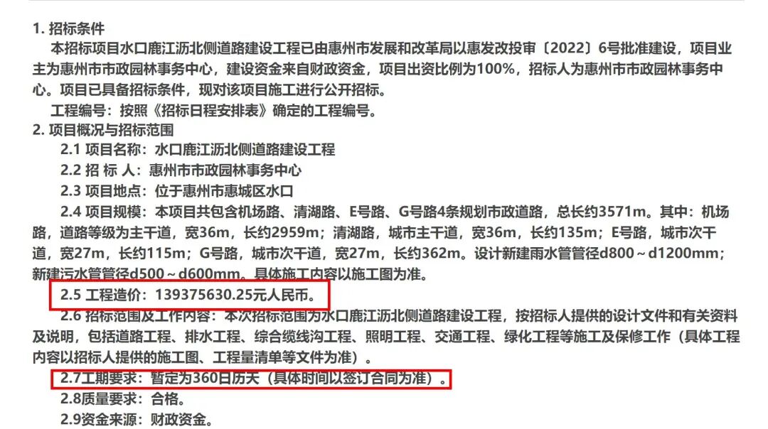 近日,惠州市公共资源交易中心发布《水口鹿江沥北侧道路建设工程【施工】招标公告》,其中就提及了关注度极高的机场路!