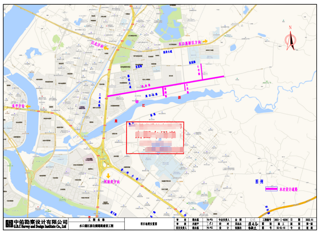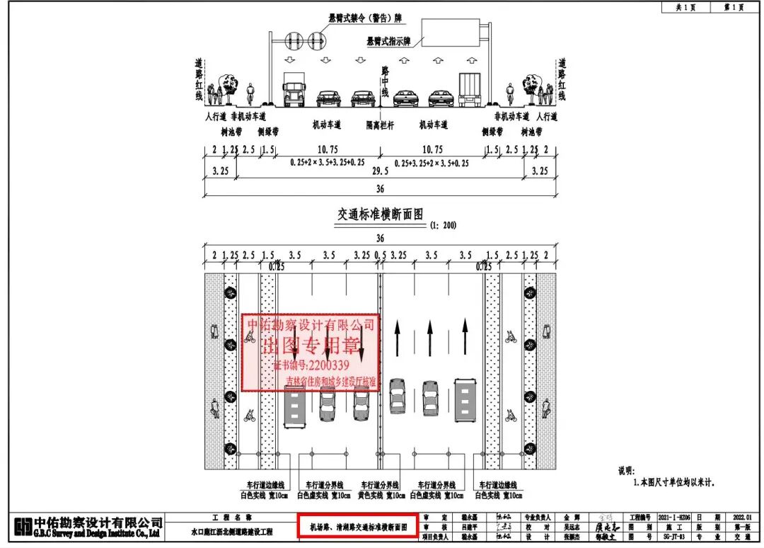 其中机场路,道路等级为主干道,宽36m,长约2959m;清湖路,城市主干道,宽36m,长约135m,这两条道路均为双向6车道;E号路,城市次干道,宽27m,长约115m;G号路,城市次干道,宽27m,长约362m,这两条道路设计为双向4车道。