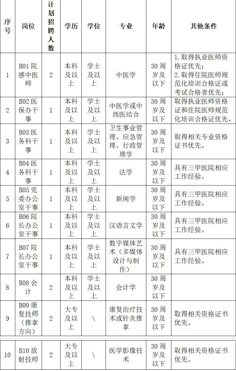 全市市直各医疗卫生事业单位共招聘154名编外工作人员,具体的招聘单位、岗位、人数和资格条件。