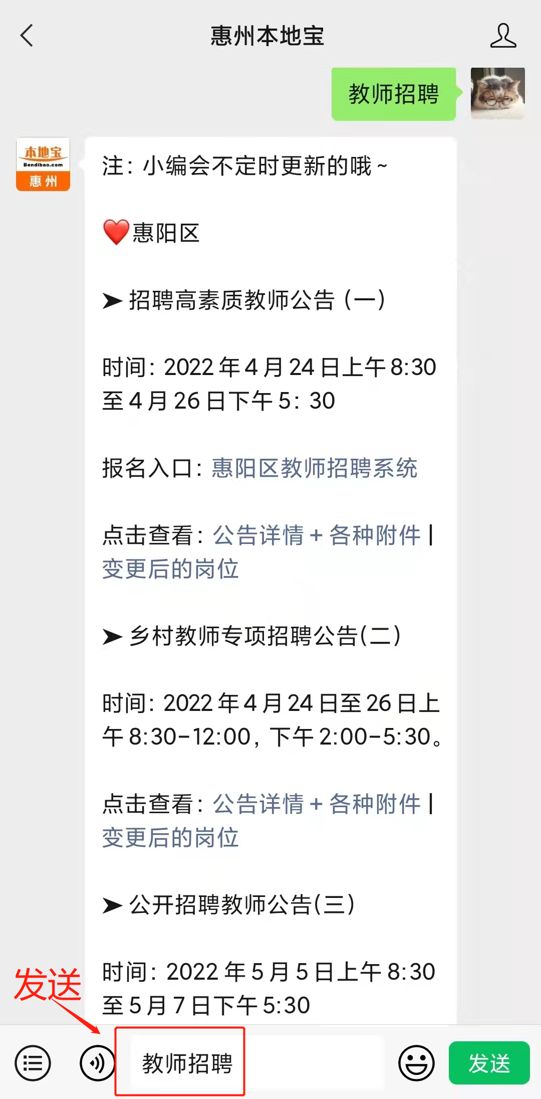 ?小编提示:在“惠州本地宝”公众号微信聊天对话框回复【教师招聘】即可查看网上报名入口以及更多教师招聘信息(更新中)