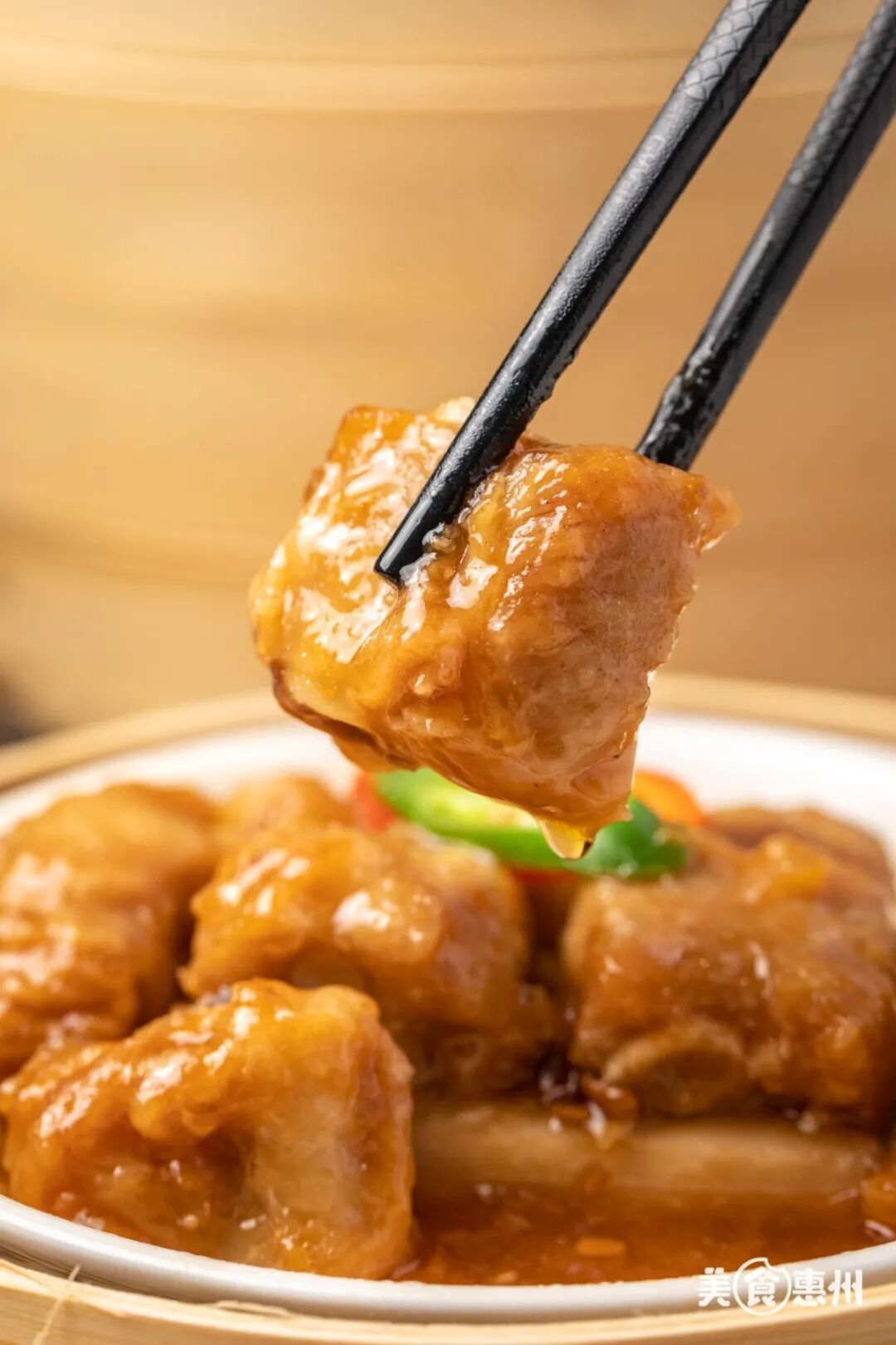 金酱蒸排骨是许多食客饮茶必点的茶点之一。香气四溢的金酱尤为激发食欲,缀以辣椒片使得其卖相更佳。