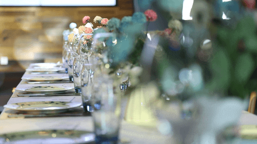 从室外小院走进室内大堂,每一处角落都有植被鲜花点缀,尤为浪漫。能容下120人的大厅,座位之间却依然宽松舒适,不管是公司年会还是聚会酒席,都很有格调~