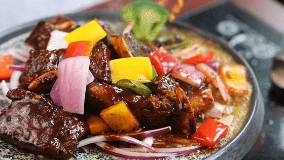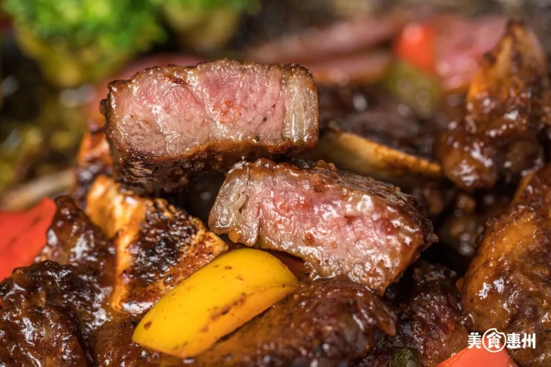 鲜嫩耐嚼的牛仔骨,经过高温铁板牢牢的锁住肉汁,上桌时还“呲呲”冒着热气,仔细品尝,酱香浓郁,搭配脆嫩的彩椒和洋葱,这滋味简直太绝!