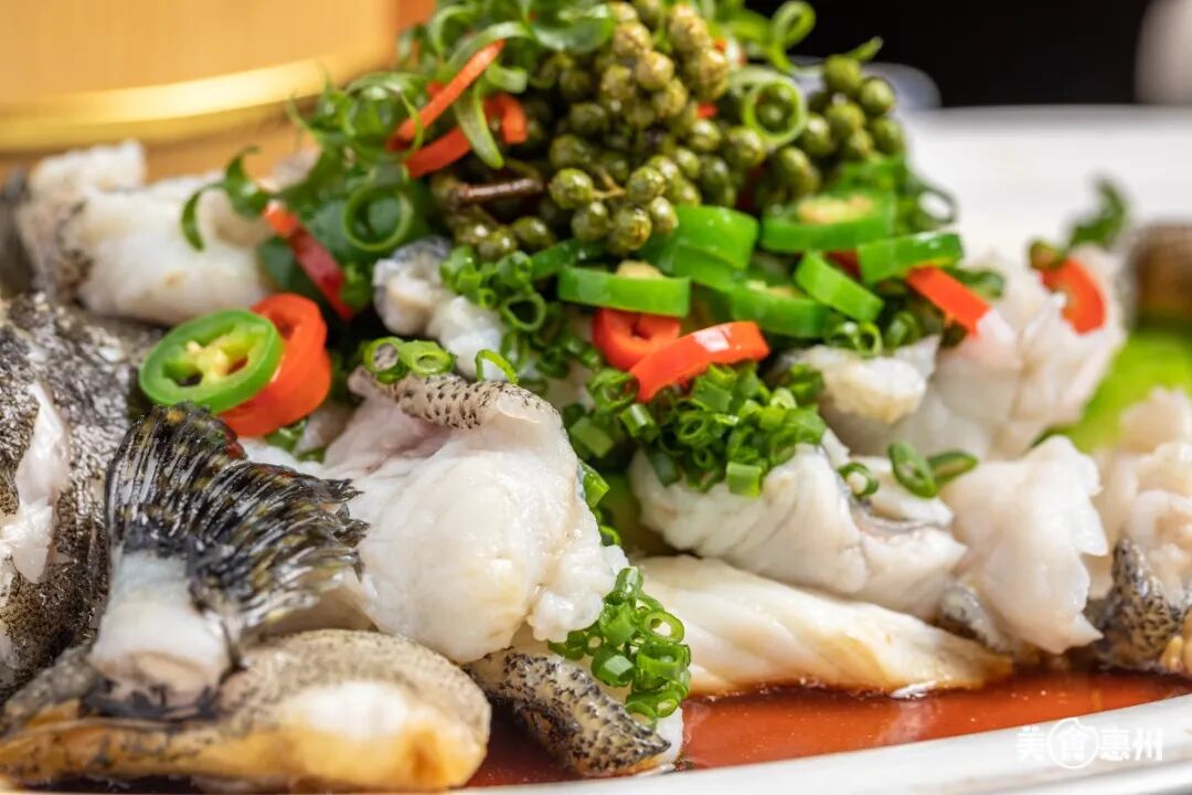 广东人酷爱吃清蒸鱼,那么这条特色鲜花椒蒸斑鱼一定要点上一份。