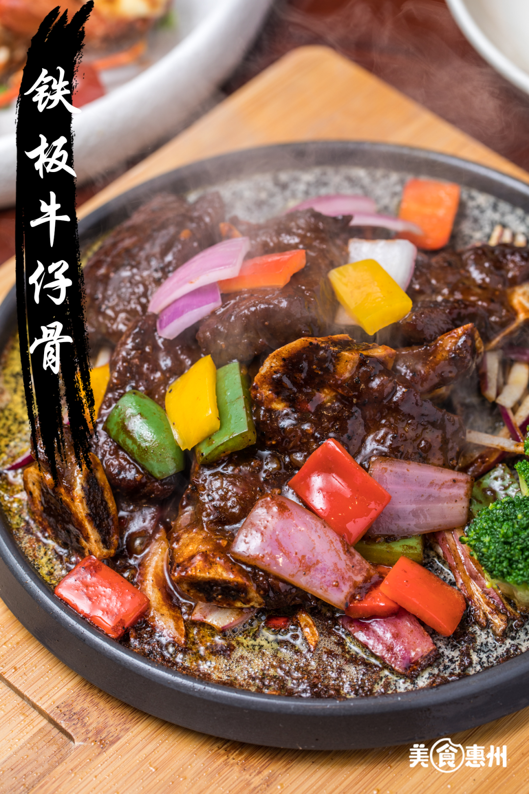 分量十足的铁板牛仔骨,被醇香黑椒汁包裹着,一上桌就要被抢空。