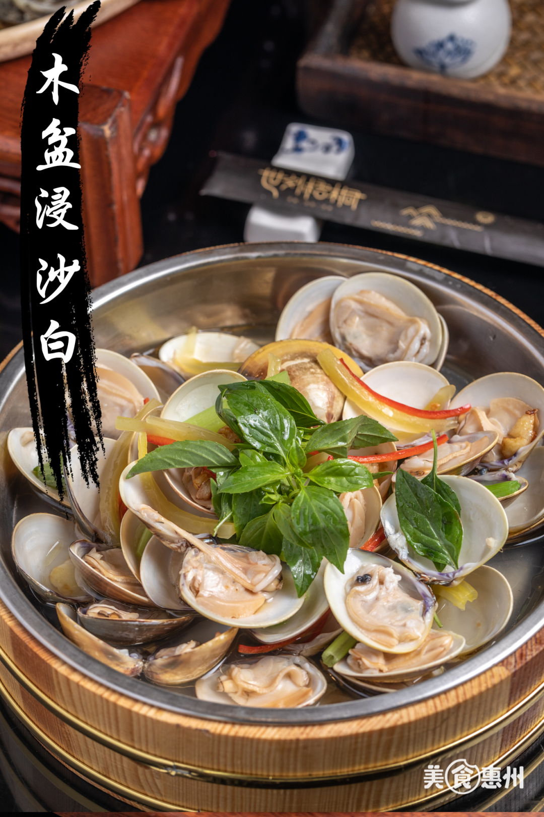 磨盘大的木盆盛满了沙白,仿佛集体蒸桑拿一般,个个肉大饱满,光是上菜的架势就足以让人惊叹。