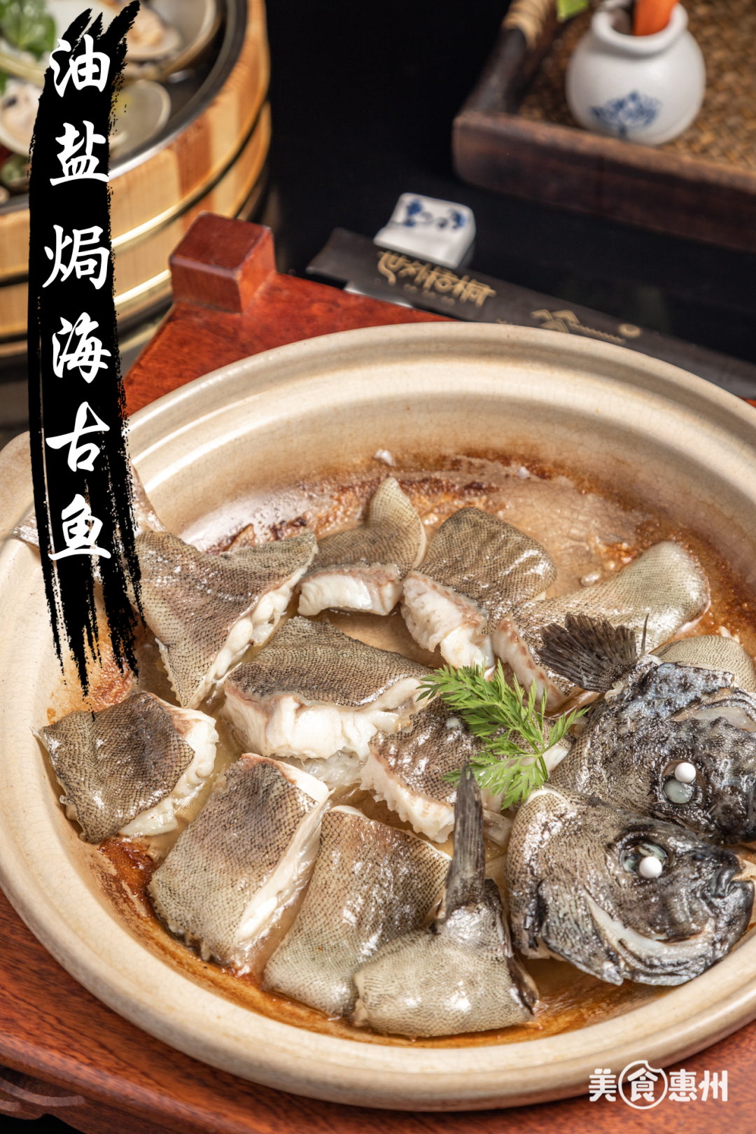 这道油盐焗海古鱼,盖一揭开,浓郁的鱼香味便传满整个房间,传承了远古南粤土著居民用海盐烹调小海鲜的技法,加以创新研发,让大海的滋味得以充分保留。