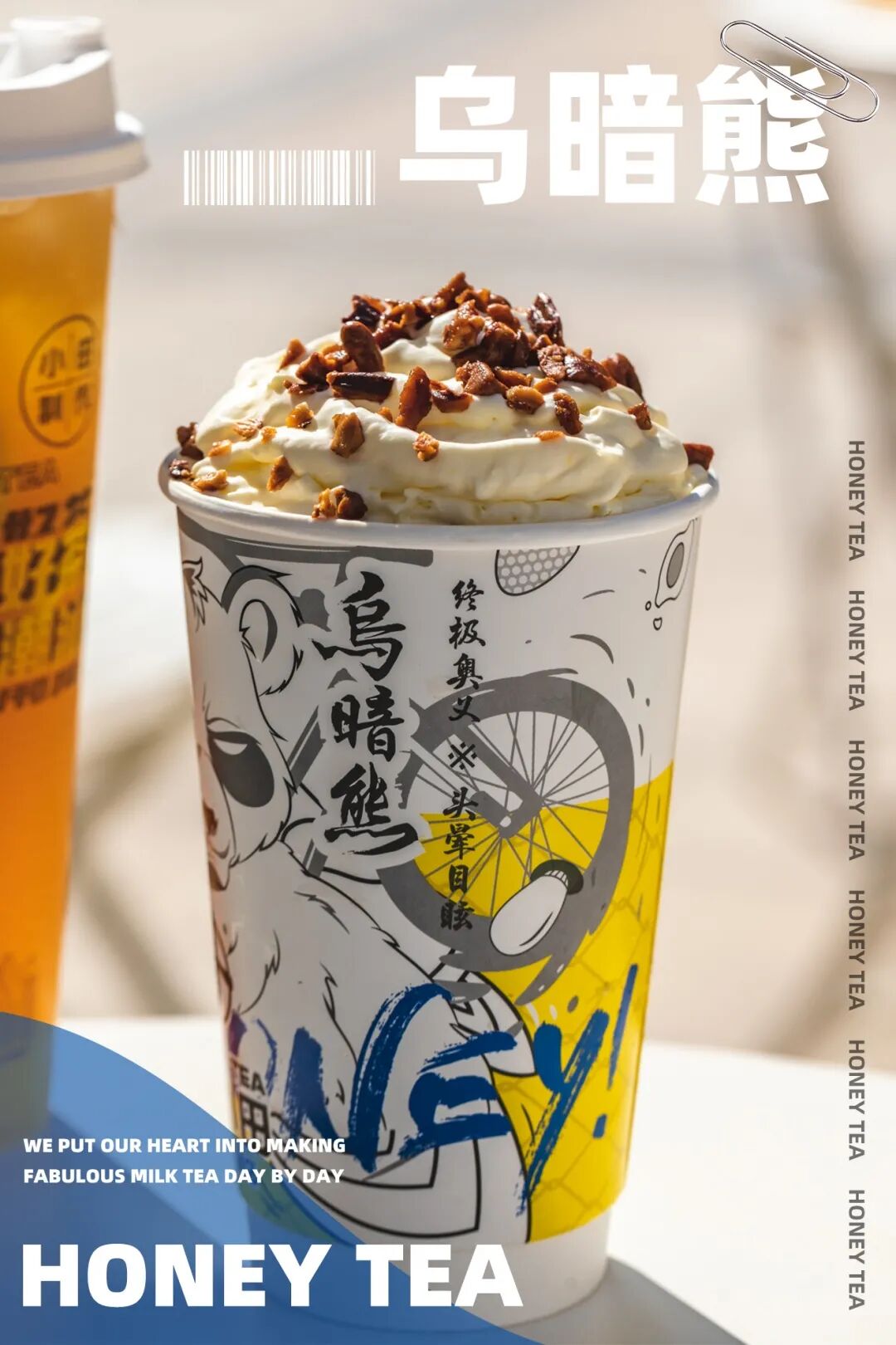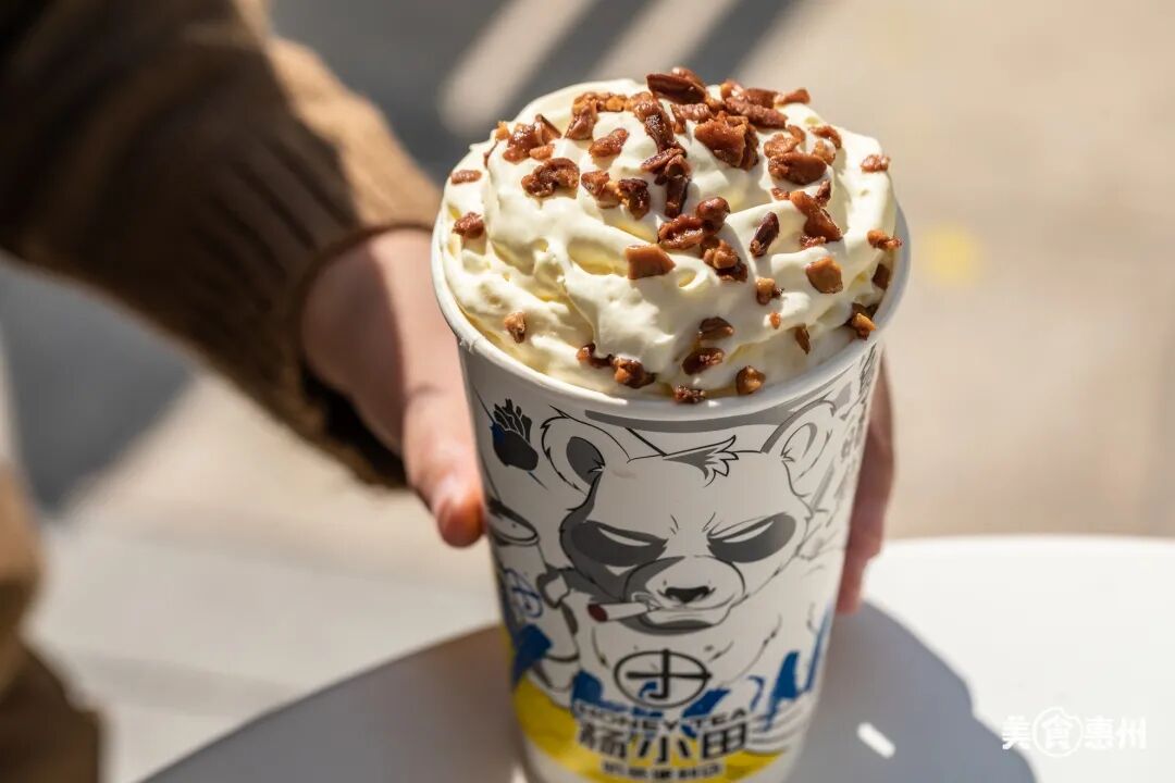 每一杯「乌暗熊」都会挤上厚厚一层香甜奶油,就像宇宙的一团小火焰。撒上碧根果,在入口的那一刻,能烧掉你的所有疲惫不堪。每每嘬上一口,乌龙奶茶的香气也会弥漫口腔,爱了爱了。