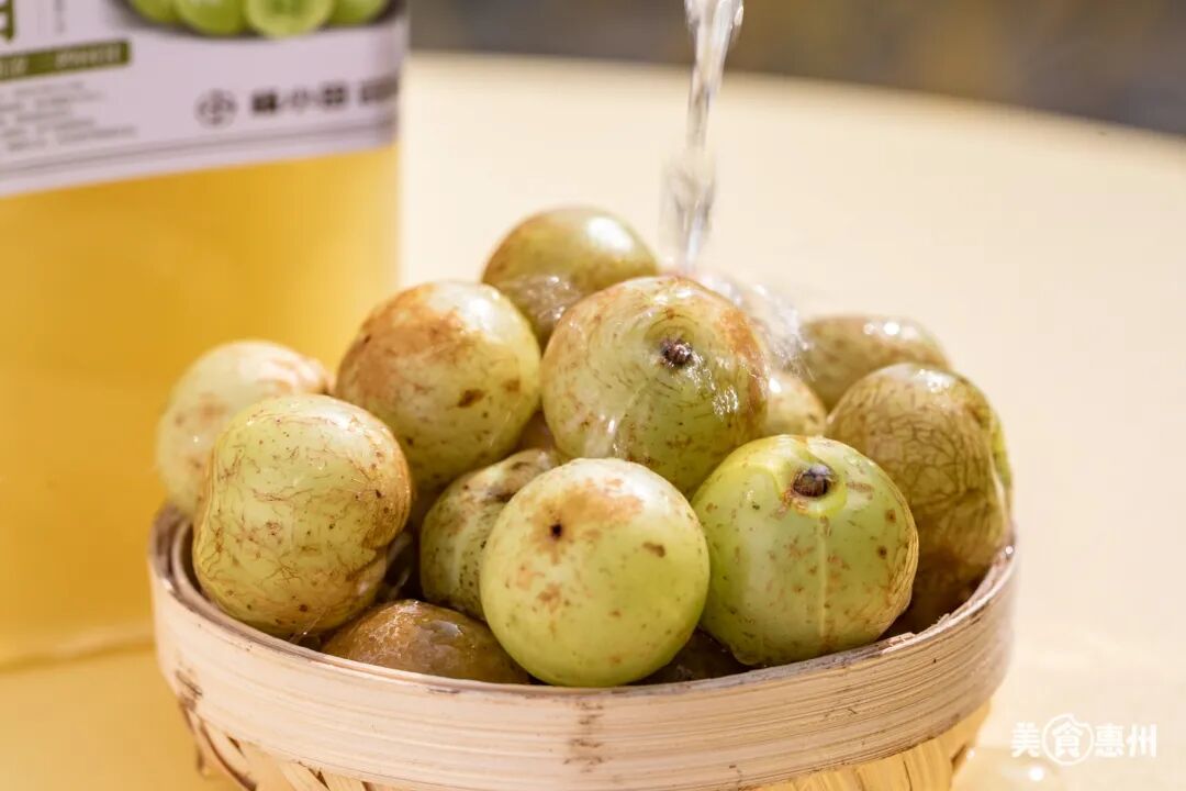 手工去核,现压现榨汁。最后过滤掉果渣萃取出浓浓的“精华”,加入少量绿茶,茶香能中和掉油柑的酸涩,味道清香有回甘。
