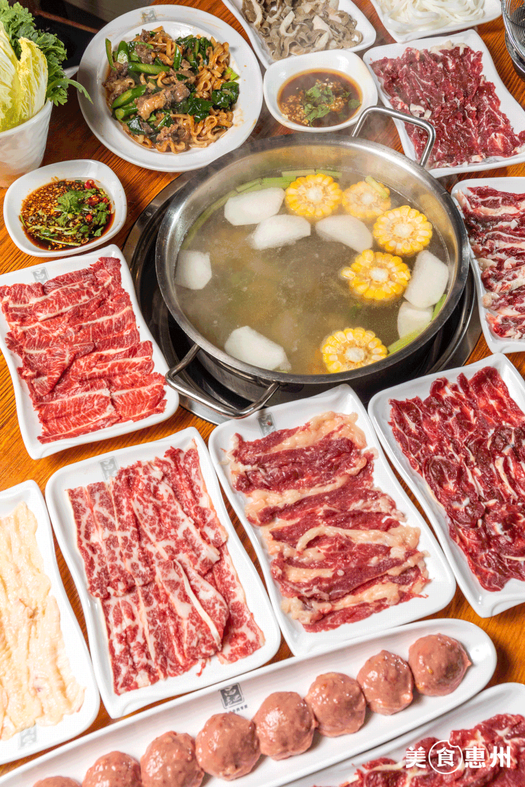 强烈推荐这里的茶树菇汤底。锅底里有满满的茶树菇,还有切好的牛腩,熬制后的汤底香味浓郁,并且用来涮煮牛肉不会盖过牛肉的鲜甜味。